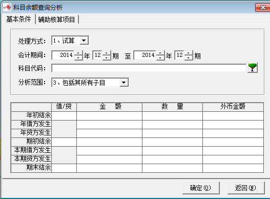 2、 科目余額表