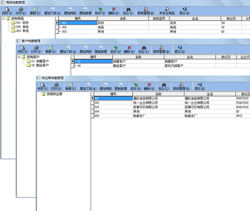 基礎(chǔ)信息管理系統(tǒng)是各項(xiàng)基本檔案管理、初始化數(shù)據(jù)管理的中心,檔案信息包括物料檔案、商品檔案、客戶檔案、供應(yīng)商檔案、倉(cāng)庫(kù)檔案、經(jīng)辦人檔案等十一項(xiàng)檔案信息,初始化數(shù)據(jù)管理包括期初庫(kù)存初始化、期初應(yīng)付賬款初始化、期初應(yīng)收賬款初始化等八項(xiàng)初始化信息。