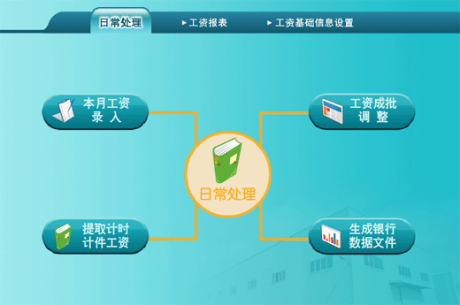 系統提供了強大的工資管理功能,用戶可以自定義工資項目、自定義工資項目運算公式。在自動提取計時計件工資和輸入其他工資項目數據后,系統會根據用戶設定的運算公式,自動計算生成各種工資報表。
