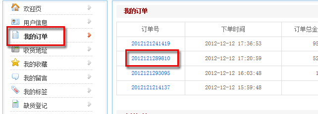 2、點擊左側“我的訂單”可以查詢訂單情況。詳細點擊某個訂單可以查詢某個訂單情況。