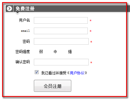 2、填寫用戶名、密碼、郵箱等個人信息進行注冊;3、選中接受《用戶協議》提交“會員注冊”,完成注冊。