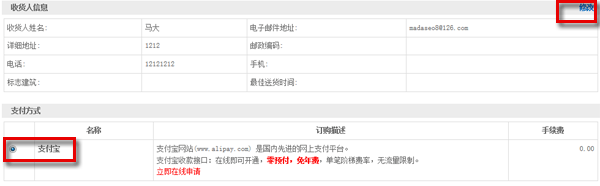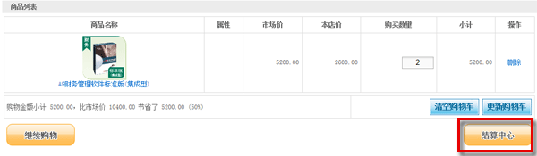 3、選好商品后點擊“結算中心”,進行詳細填寫,收貨人信息、支付方式等信息。