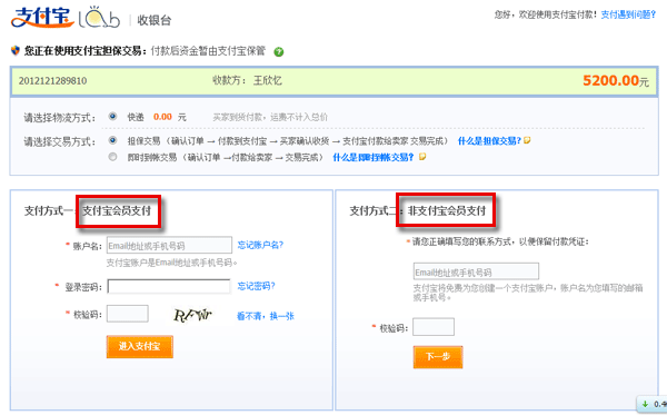 非支付寶會員、網上銀行賬戶,按照以下界面完成支付。